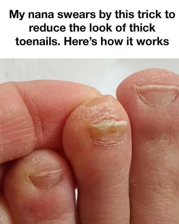 According to my nana, the trick to reducing the appearance of thick toenails involves a simple routine using common household items. This method has been passed down through generations and has helped many individuals maintain better nail health. The efficacy of this trick lies in its ability to soften, clean, and gradually thin out the nails without causing any harm.